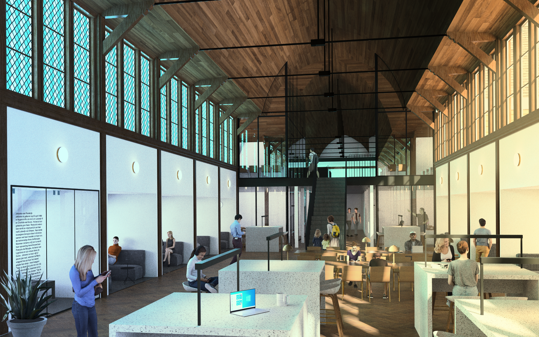In december 2025 startte de restauratie van de ramen aan de westzijde. De leien werden verwijderd. De 54 raamdelen werden voorzichtig uit hun kader genomen, genummerd. Vervolgens werd ter plaatse de beglazing en oude mastiek verwijderd en werd het schrijnwerk gerestaureerd. Voor de meeste ramen was het nodig de afdeklatten te vervangen. Er wordt isolerende beglazing geplaatst. Daarbij worden geen siliconen maar mastiek gebruikt. De voltooiing van de werken wordt voorzien voor februari 2026. Dan starten de ruwbouwwerkzaamheden met de plaatsing van een mezzanine in de ruimte.